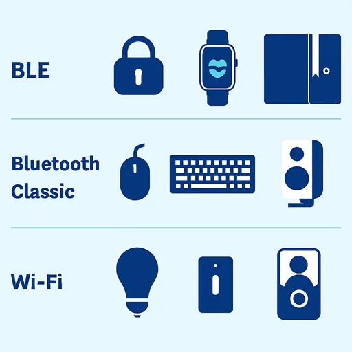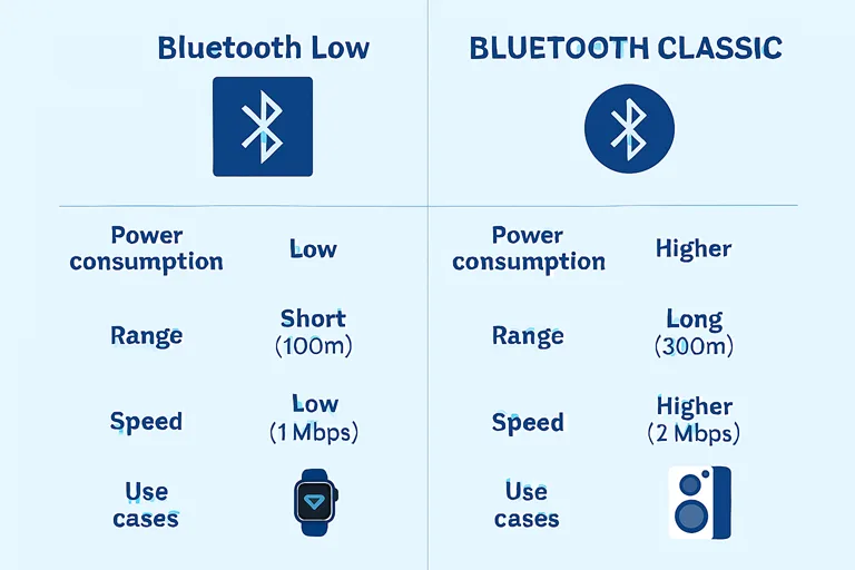 • Practical takeaway: If your device wakes infrequently and transmits tiny packets (temperature, motion, lock state), BLE wins. If your device must stream with minimal dropouts (headsets, speakers), stick to Classic.