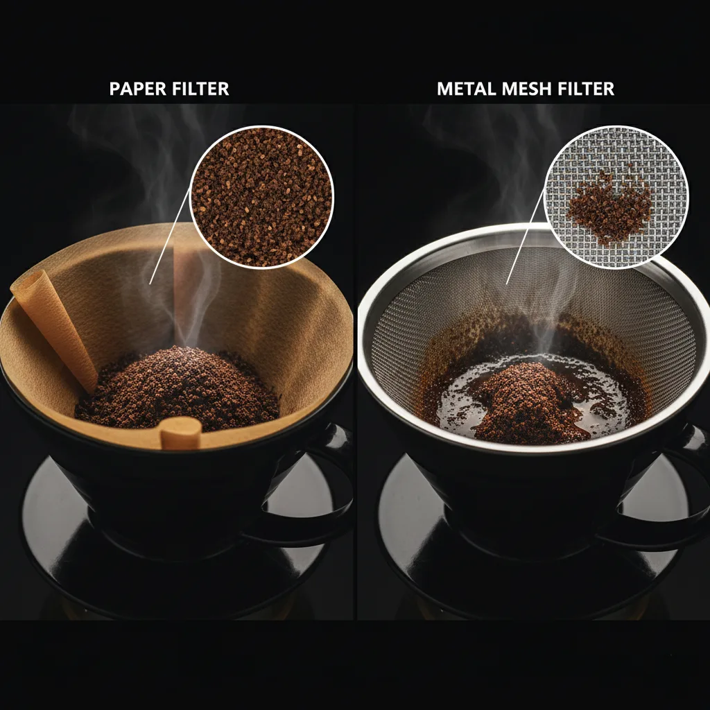 Paper filters and metal mesh filters produce distinctly different coffee experiences because of their fundamental differences in design and pore size, with paper providing a cleaner cup (clarity) and metal allowing more oils and sediment through for a fuller-bodied cup (body).