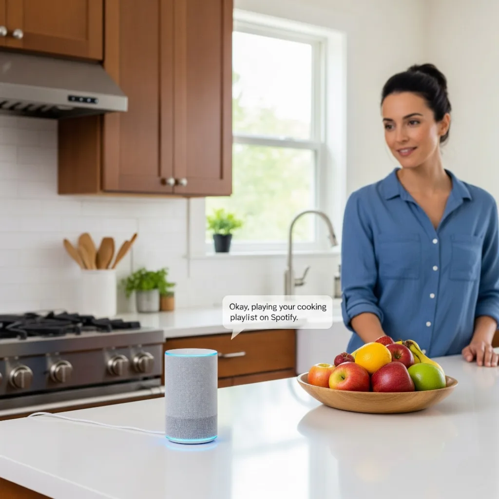 Smart TVs and streaming devices can be controlled with voice commands to search for content, adjust volume, and manage playback. They can also work with smart speakers, letting you control them without touching anything, from anywhere in the room.