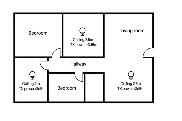 - Beacons: position them about 1.6 to 1.8 meters high near doors and hallways to ensure consistent detection.